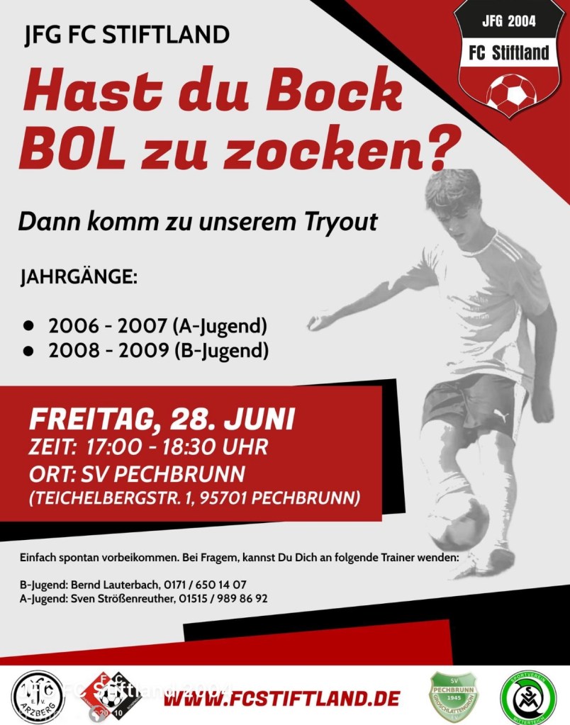 #Werde ein Teil der JFG FC Stiftland# Verfasst vonStrößenreuther24. Juni 2024Veröffentlicht inAllgemein Ähnliche Beiträge
