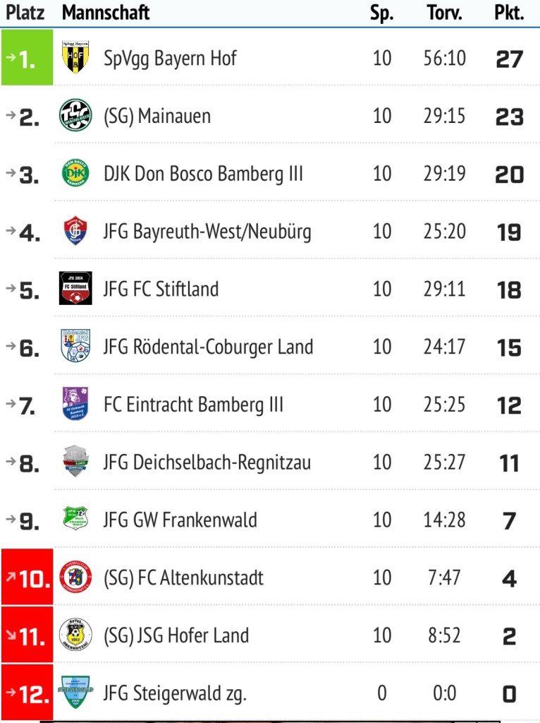 Im letzten Pflichtspiel vor der Winterpause gegen die JSG Hofer Land , begannen die Jungs des Trainerteams Lauterbacher/Brunner anfangs etwas übereifrig und vergaben in den ersten 20 Minuten einige gute Möglichkeiten. Doch in der 22. Spielminute eröffnete Paul Meiler mit dem 1-0 den Torreigen. In der 34. Minute war es wiederum Paul Meiler der das 2-0 markierte. Und Louis Käs brauchte nur 2 Minuten 40.&42. Minute um zwei Tore zu erzielen und stellte damit den 4-0 Pausenstand her.