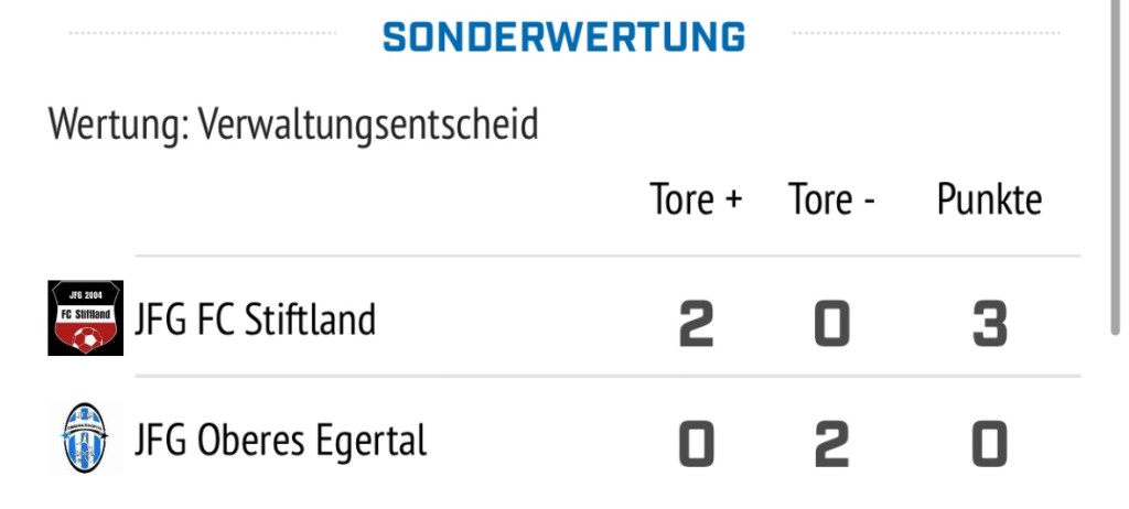 Sonderwertung wegen nicht Antreten von JFG Oberes Egertal