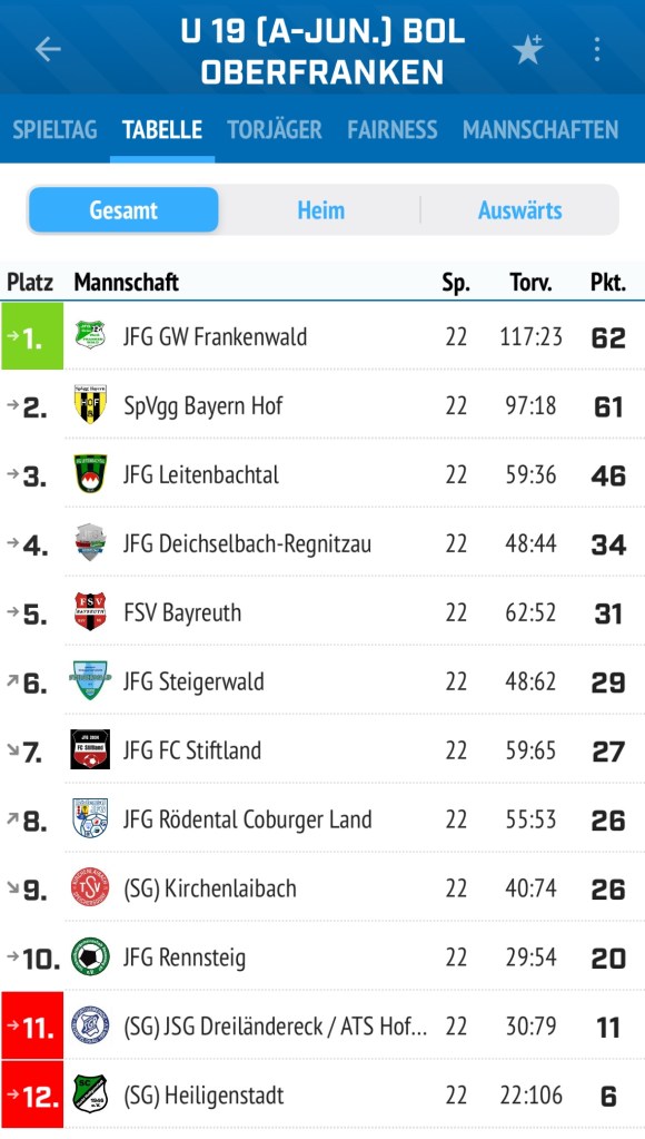 Die Saison 24/25 der JFG FC Stiftland U19 in der Bezirksoberliga ist Geschichte und wir können auf eine solide Leistung zurückblicken. Unser lizenzierter Trainer Sven Strößenreuther und sein Team, bestehend aus Frank Gauter, Manuel Schmid und Robin Fischer, haben die Mannschaft hervorragend geführt.